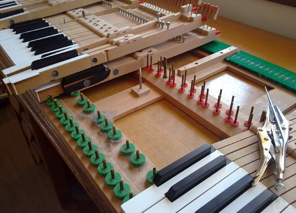 Releasing the keys on a Gerard Tuinman fortepiano: all bearing points – balance hole, chasing, front guide (all wood, of course) tended to be tight.