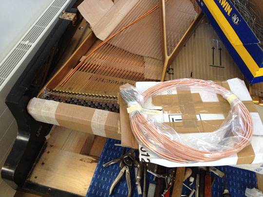 I use strings made by John Delacour. John always calculates the tensions well, whatever make of piano, and provides a quick turn-around service.