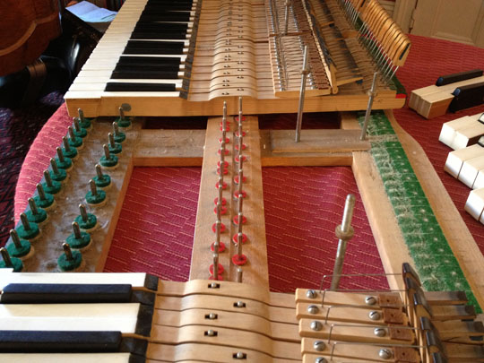 Keys were tight on this Bluthner Patent Action grand, and there was suspected moth damage, so I had to do the deed of removing the stack (which is easy – it’s just the re-fitting of the stack which takes some extra patience!).