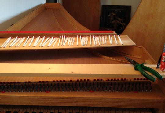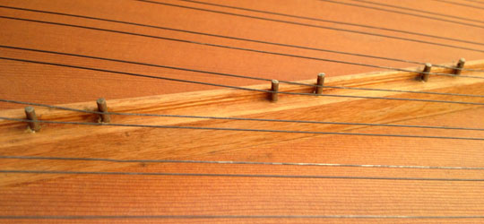 because the strings can easily ride up the bridge pins – and remain ‘hanging’ there. By the way, this is also just as true of pianos (though the movement is much smaller) – so tapping the strings into the bridge pin angle stabilises not only the tone and tuning, but also the regulation.