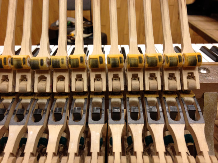 The alignment of levers & hammer rollers is, like all adjustable parameters in the regulation sequence**, essential to optimum function – which is in itself a prerequisite for the piano’s voicing.