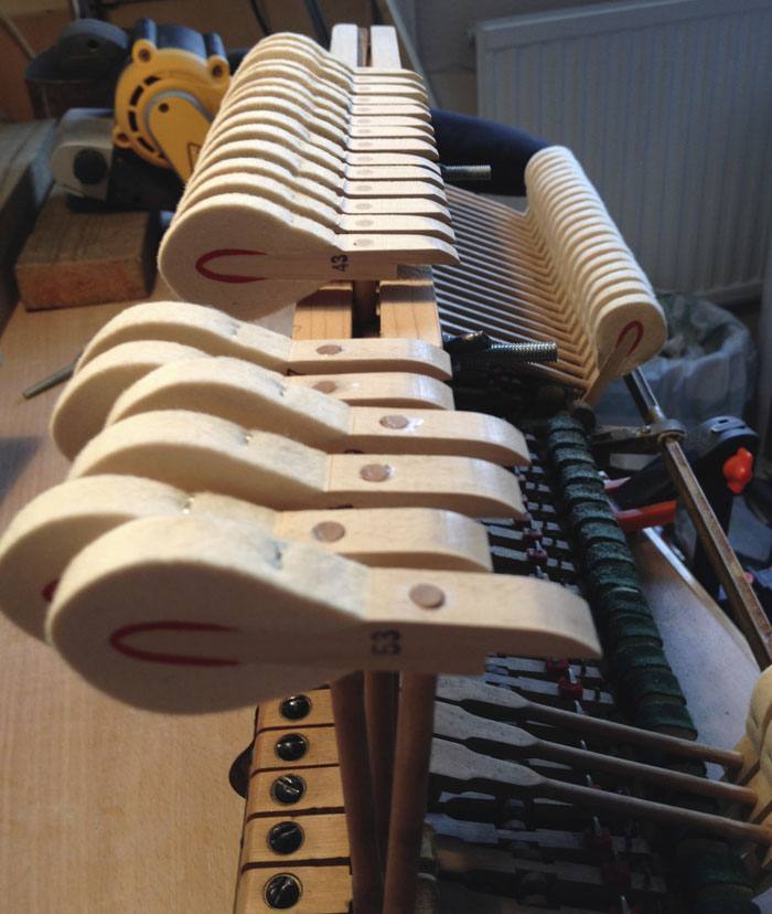 With keys already loaded to the hilt with lead, the only way forward was to lose as much of the hammer wood as possible. Time to get out the old sander…..