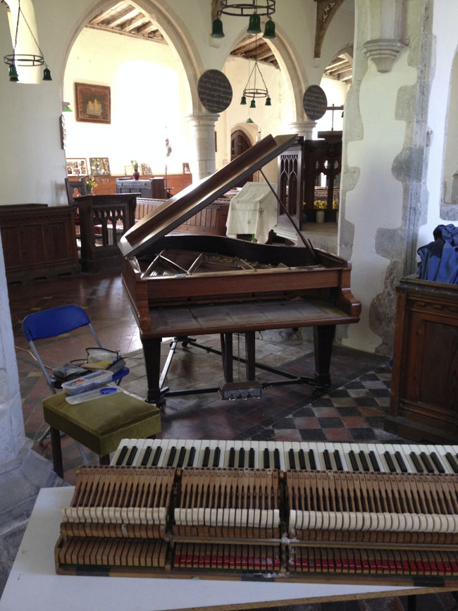 This early model O Steinway also lives in a Romney Marsh church, so stiff keys and sluggish everything else needed as much help as I could offer.