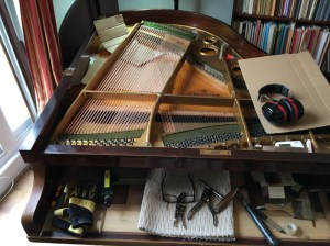 As I was drawing out a length for this model L Bechstein, the lid suddenly jumped off – and I got THE WHOLE LENGTH…in one big tangled mess!