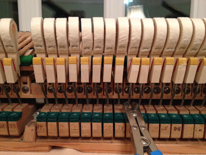 Many Piano People do this on the work bench, using a straight-edge; some draw slips of paper between the dome screw surface and the keybed. Neither of these methods are reliable – or easy.